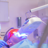 Una settimana di trattamento i denti saranno già visibilmente più chiari. Lo sbiancamento professionale, o power bleaching, è una metodica attuabile esclusivamente nel centro odontoiatrico dal dentista; si avvale delle stesse mascherine descritte poco sopra ma gli agenti sbiancanti hanno un effetto immediato tant'è che in pochi minuti è possibile ottenere un notevole schiarimento dei denti. È anche definito sbiancamento dentale laser perché i composti sbiancanti usati dal dentista sono attivati dalla luce blu, la stessa che induce l'indurimento dei materiali compositi delle otturazioni.